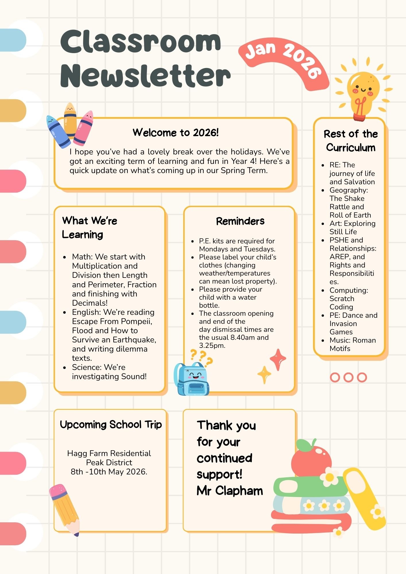 This page has useful information about the day-to-day running of Year 4 as well as the areas of learning that we will be covering this term.