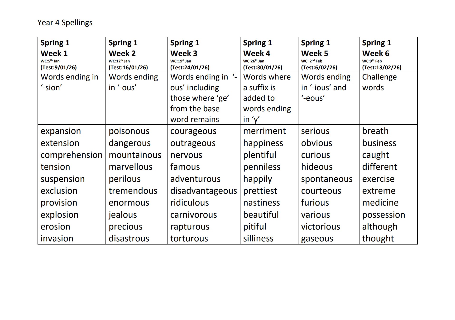 • Spellings will be tested every Friday. A termly spelling sheet will be sent home, plus you can find a copy in the link below. A weekly spelling game will be available on Spelling Shed to help the children learn in a fun way. Below are some useful spelling links: